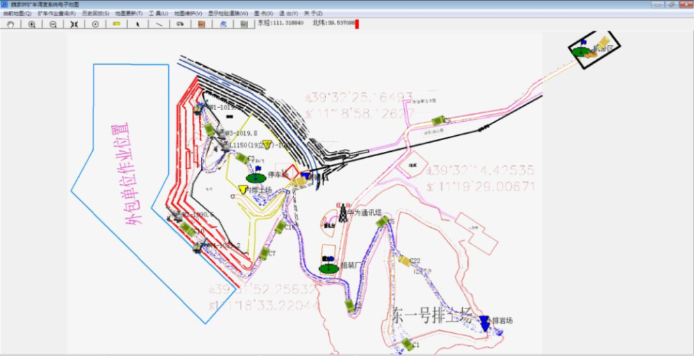 本次系統(tǒng)的實施范圍是在城門山銅礦建立一整套覆蓋整個采區(qū)的包含生產(chǎn)調(diào)度車載終端、采礦場調(diào)度室控制中心、系統(tǒng)軟件等在內(nèi)的露天采礦車輛調(diào)度系統(tǒng)。實現(xiàn)采運作業(yè)的實時遠程自動化生產(chǎn)指揮和生產(chǎn)管理,實現(xiàn)露天礦所有生產(chǎn)數(shù)據(jù)實時在網(wǎng)、在線。利用現(xiàn)代高新技術(shù)和先進科學(xué)的管理手段,對露天礦挖機、自卸卡車、破碎站、排土場及輔助作業(yè)設(shè)備工藝范圍內(nèi)的主要設(shè)備進行實時優(yōu)化調(diào)度、管理和監(jiān)控。